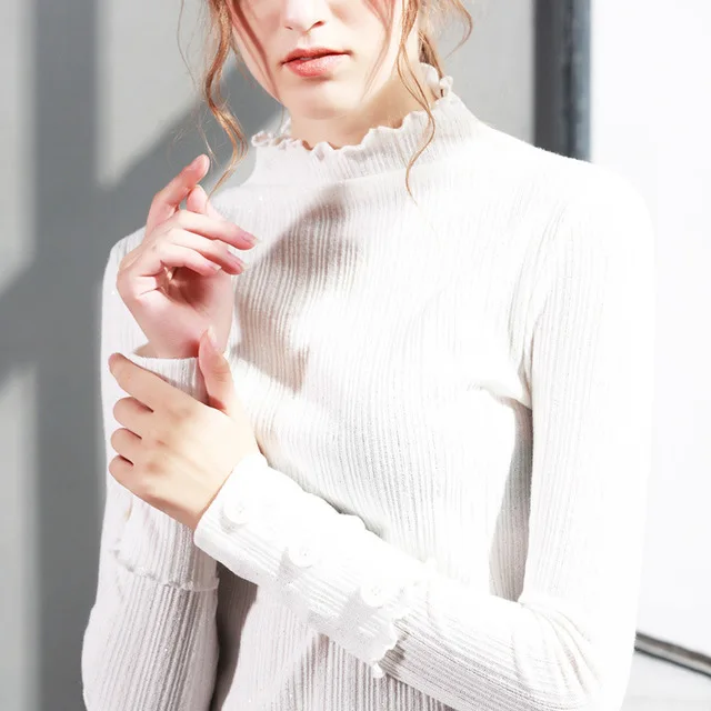 Best Chance of Cute Ruffles Sweater Women Slim Formal Wear Long Sleeve Sweater Pullover Knitting Spring Autumn 201
