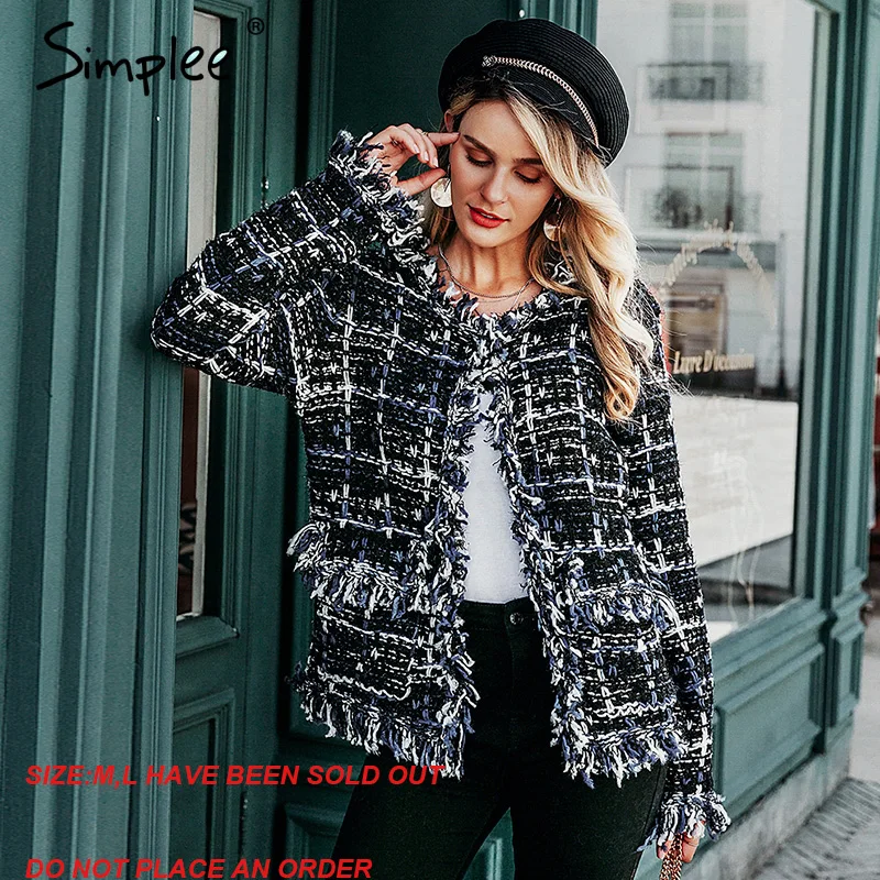 Clearance Simplee Plaid frayed edge tweed jacket coat Women v-neck double breasted button belt ladies coat Long sleeve outwear blazer coatEarn 19% Cash Back, VALID UNTIL TOMORROW